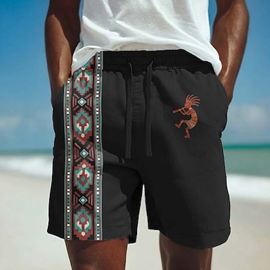 Homme Aztèque Ethnique Kokopelli Shorts Short décontracté Shorts en coton Taille Moyenne Vintage Rétro Vacances Tenue Quotidienne Fête Poches Latérales Taille élastique avec cordon de serrage Designer