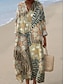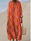 Femmes Robe Midi Robe fourreau Vacances Occasionnel Sortir Coupe Ample Fleuri Graphique Abstrait manche longue Col en V Bleu Marron clair Orange Été Printemps