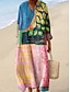 Femmes Robe Ensemble Robe trapèze Élégant Vacances Graphique Géométrie Superposé Imprimé Robe maxi Manche 3/4 Col en V Quotidien Soirée Bleu Rouge Violet Été Printemps Coupe Ample