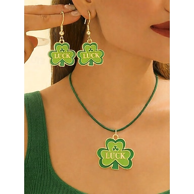 Collier trèfle pour femme pour la Saint-Patrick, pendentif vert en alliage durable, plusieurs styles dont trèfle et fer à cheval, bijoux irlandais festifs pour les défilés, les fêtes et les jours fériés.