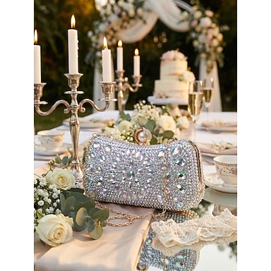 Femmes Fille Pochette Sac de soirée Sacs Pochette Alliage Ensemble de 2 pcs Fête / Soirée Douche nuptiale Fête de mariage Paillettes Cristaux Couleur Unie Géométrique Strass Bleu Argent Transparente