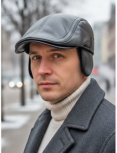 Casquette pour homme en similicuir, design élégant avec cache-oreilles pliables, disponible en plusieurs couleurs, idéale pour l'hiver et les activités de plein air