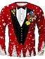 Noël Homme Costume de Noël Smoking T-shirt manche longue T-shirt Impression 3D Col ras du cou Chemise Mode Basique 3D Rue Occasionnel Quotidien Rouge 3 Rouge rouge 2 Été Printemps Vêtement Tenue S M