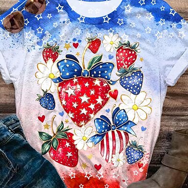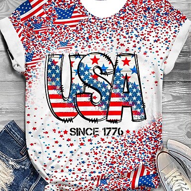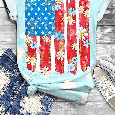 Jour de l'Indépendance Américaine Femmes T-shirt Imprimé Graphique Drapeau Élégant Classique Occasionnel Manche Courte Col ras du cou Hauts Réguliers Quotidien Noir Gris Bleu clair Été Printemps