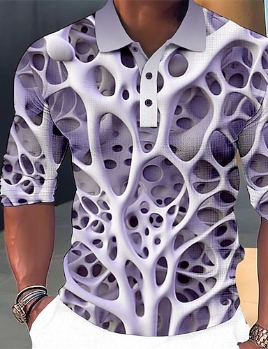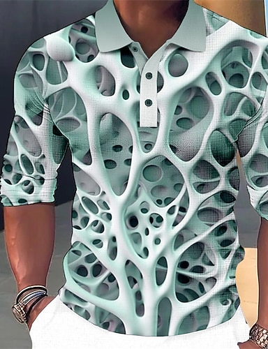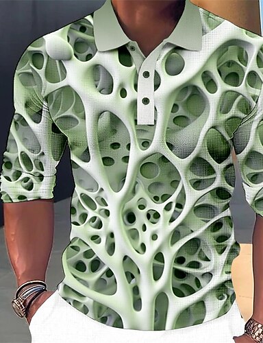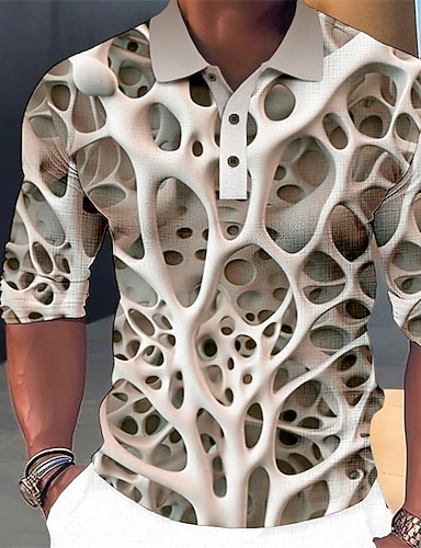 Homme Géométrique Chemises Polo Gaufre Chemise de golf manche longue Polos Chemises à Col Occasionnel Vêtements de vacances Tenue formelle Vêtements de festival Boutons Impression 3D Printemps