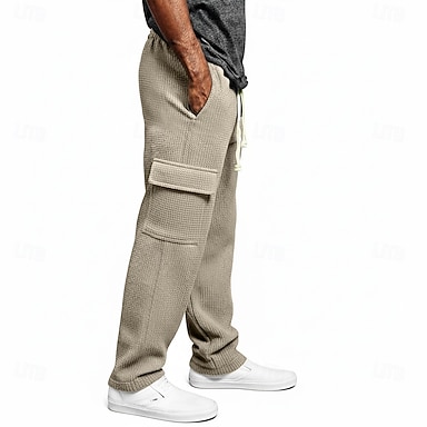 Homme Gauffré Pantalons Cargo Jogging Cargo Pantalons Pantalon de survêtement droit Cordon de serrage Taille Élastique Multi-poches Uni Évacuation de l'Humidité Respirant Longueur complète Sport en