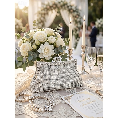 Pochette de soirée pour femme en polyester ornée de perles, disponible en plusieurs couleurs, design élégant pour les mariages et les événements formels.