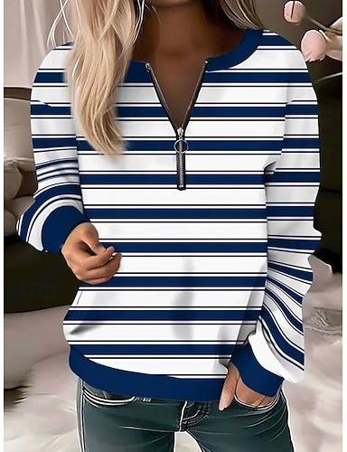 Pull à fermeture éclair quart pour femmes graphique géométrique rayé chaud mode sportive à manches longues col rond tops réguliers vêtements de rue port quotidien décontracté impression à moitié rose