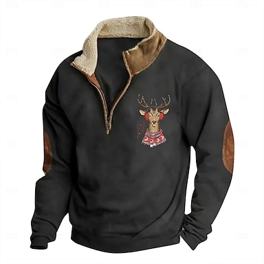 Homme Sweat-shirt Sweat-shirt quart de fermeture éclair Noir bleu marine Marron Gris Demi-zip Bloc de Couleur Renne Demi-zip Imprimé Sport & Loisir Quotidien Fête Polyester ancien Streetwear