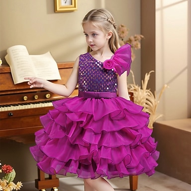 Robe de Demoiselle d'Honneur Fille Fille Robe de soirée Tenue de mariage Soirée Mariage Formel Formel Princesse Beau Paillettes Patchwork Couleur Unie Manche Courte Col Rond Noir Rouge 4 ans et +