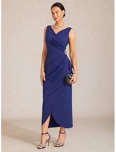 Robe de fête longueur cheville en A robe de cocktail robe de invitée de mariage robe de mère de la mariée à manches 3/4 décolleté en V grande taille scintillante avec couleur unie