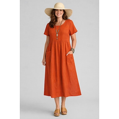 Femmes Robe Midi Faux coton lin Robe fourreau Robe Décontractée Robe d'été en coton Basique Moderne Quotidien Week-end Coupe Ample Uni Demi Manches Col ras du cou Vert militaire Rose Claire bleu