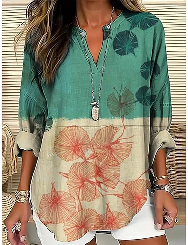 Femmes Chemise Chemise Bohème Chemisier Imprimé Fleuri Graphique Bohème ancien Quotidien manche longue Col en V Hauts Longs Quotidien Fête Sortir Vert Claire Été Printemps