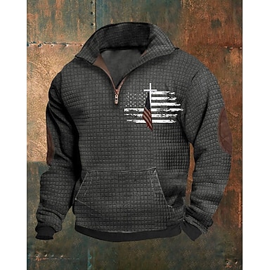 Homme Sweat-shirt Sweat-shirt quart de fermeture éclair Noir bleu marine Bleu Vert Gris Demi-zip Drapeau national Avec Poches Sport & Loisir Quotidien Fête Polyester Streetwear Basique Occasionnel