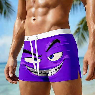 Homme Dessin animé Visage Souriant Blocage de couleurs Maillots de bain Maillots de bain shorts de bain Shorts de Surf Taille Moyenne Vintage Rétro Vêtements de rue Fête Poches Latérales doublure en