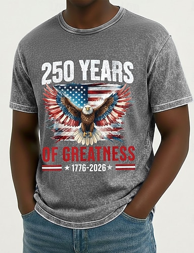 Homme Drapeau Américain Aigle T-shirt T-shirt à lavage minéral Manche Courte T-shirt Lavage à l'acide Col ras du cou Chemise Vintage Rétro Patriotique Occasionnel Voyage Vacances Bleu Violet Gris Ét