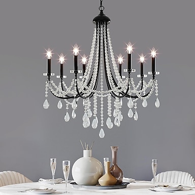 lustre de style bougie avec décor en cristal, plafonnier semi-encastré simple classique/traditionnel, lumière fixe pour entrée, couloir, salle à manger et foyer noir