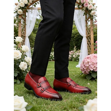 Chaussures à boucle rouges pour hommes en similicuir – chaussures habillées élégantes et stylées pour les mariages et les événements spéciaux