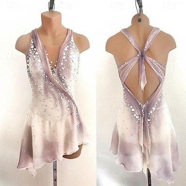 Robe de patinage artistique Femmes Patinage Robe Violet Claire Patchwork Dos Nu Élastique Entraînement Compétition Tenue de Patinage Classique cristal pailleté manche longue Patinage sur glace