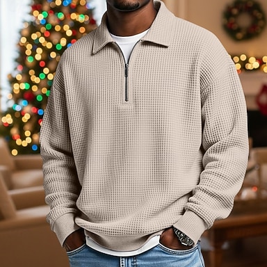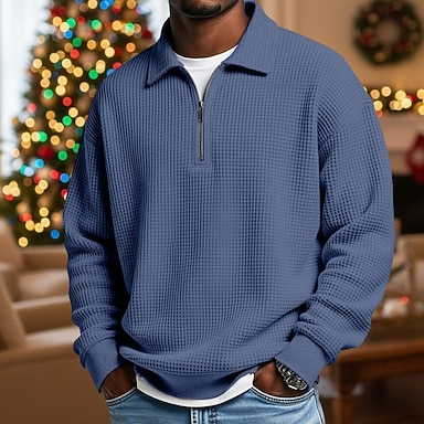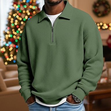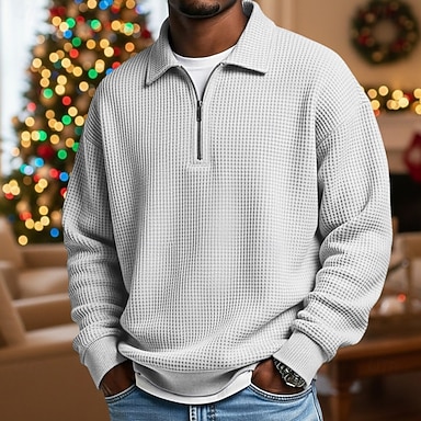 Homme Chemises Polo Gaufre Polo quart de zip Extérieur Décontracté Zip quart manche longue Mode Moderne Couleur Unie Texturé Tricoté Printemps & Automne Toutes saisons Coupe Ample Noir Blanche bleu
