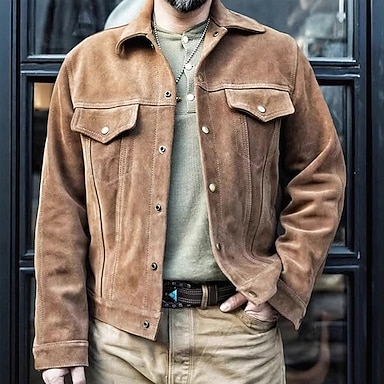 Homme Veste en faux suède Veste Cargo Veste Décontractée Vacances Quotidien Résistant à l'usure Respirant Avec Poches Printemps Automne Uni Mode Classique Revers Régulier Marron Veste