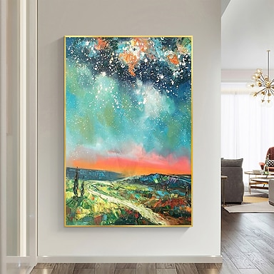 peinture à l'huile faite à la main toile art mural décor original coloré ciel nocturne art peinture pour la décoration intérieure avec cadre étiré / sans peinture de cadre intérieur