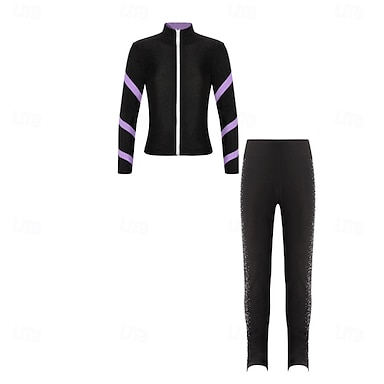 Veste de patinage artistique avec pantalon pour femmes et filles / pantalon/leggings, tenues noires, bleues et fuchsia en polaire extensible et spandex, vêtements d'entraînement et de compétition
