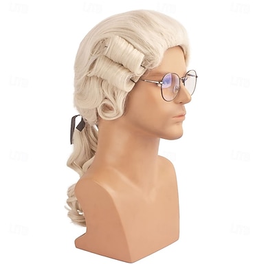 Perruque bouclée d'avocat, perruque coloniale pour costume de juge, perruque pour cosplay, perruque pour soirée beige