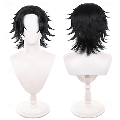 Perruque champignon noire pour homme et femme, coupe courte au bol avec frange, idéale pour les fêtes, Halloween, le cosplay et les animes.