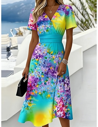 Ligne A Longueur au sol Robe de Soirée Tenue de soirée Élégant Pastel Mariage décontracté / de jour Manche Courte Col en V Mariage Formel Chiffon avec Fleurs 3D Froncé