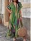 Robe Midi Femme Col V Manches Longues Kaftan Léger Coupe Ample Robe A Ligne Décontractée Boho Sortie Graphique Géométrique Rayée Manches Longues Col V Noir Jaune Vert Clair Rouge Automne