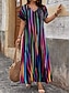 Femmes Robe Midi Robe Décontractée Robe Imprimée Élégant Mode Extérieur Soirée Fête Coupe régulière Rayé Fleur manche longue Col en V Arc-en-ciel Rose rouge Beige Été Printemps