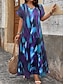 Femmes Robe Midi Robe Imprimée Mode Moderne Vacances Sortir Coupe régulière Graphique Manche Courte Col en V Bleu Rouge Violet Kaki Printemps Automne