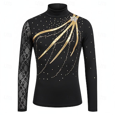 Haut de Patinage Artistique Homme Garçons Patinage Hauts Noir Patchwork Spandex Haute Élasticité Entraînement Professionnel Compétition Tenue de Patinage Classique cristal pailleté manche longue