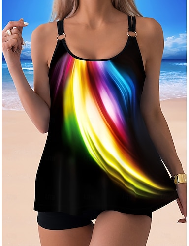 Femmes Maillots de Bain Tankini 2 pièces Shorts Maillot de bain Contrôle du ventre Taille haute Mince Dos nu Vacances Tenues de plage A Ombre Col en U Sans manches Maillots de bain