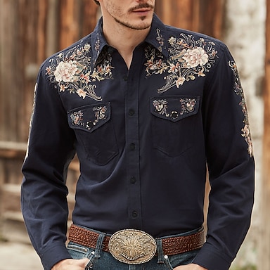 Homme Imprimé Floral Fleurs Chemise Chemise Western Chemise de cow-boy manche longue Vintage Rétro Occasionnel Extérieur Vêtements de travail Printemps Automne Col Rabattu Deux poches avant Chemise