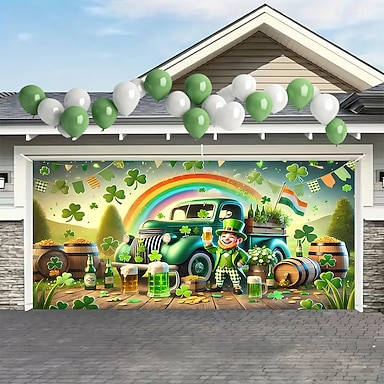 Fête de la St. Patrick tapisserie Couverture de porte de garage Grande suspension Elf Animal Mignon 3D Soirée Outdoor Vacances Arrière-plans de prise de vue Yard Décoration d'intérieur