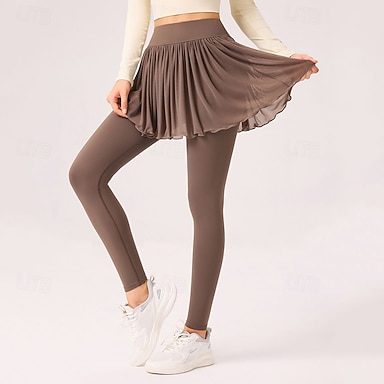 Femmes Couleur Unie Jupe décontractée Jupe avec leggings Patchwork Stylé Élastique Respirant Tennis Pickleball Course Bas Hiver Noir Blanche Café Vêtements de tennis