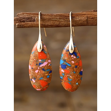 Boucles d'oreilles pendantes en pierre naturelle pour femme, style bohème turquoise multicolore, bijoux légers et tendance pour les vacances de printemps et d'été, la plage et le quotidien.