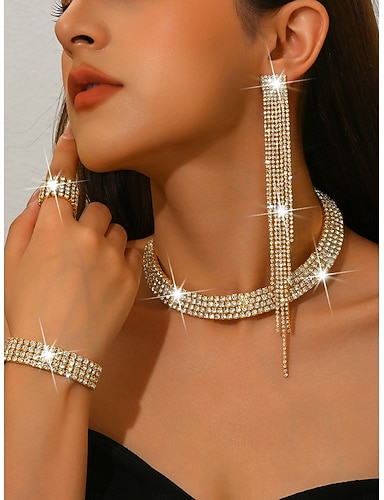 collier boucles d'oreilles bague tenues sac élégant &alliage de strass scintillant luxueux pour bijoux fantaisie pour femmes cosplay bijoux fantaisie
