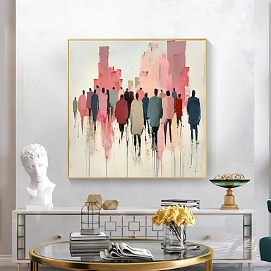 Peinture à l'huile artisanale sur toile, décor mural, impression de scène de rue, personnages, style Morandi, abstrait coloré pour la décoration intérieure, châssis entoilé, toile à accrocher / toile