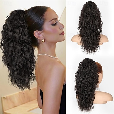 Queue de cheval à clip pour femme - Extension de queue de cheval bouclée de 35 cm, extensions de cheveux ondulés, extensions de cheveux synthétiques, postiches naturels pour femme