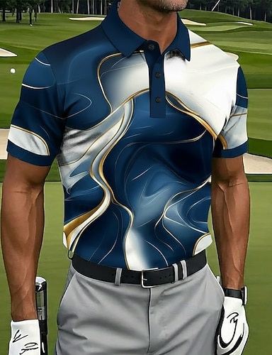 Homme Dégradé Golf Polos de Sport Manche Courte Polos Chemises à Col Occasionnel Athleisure Boutons Été Bleu