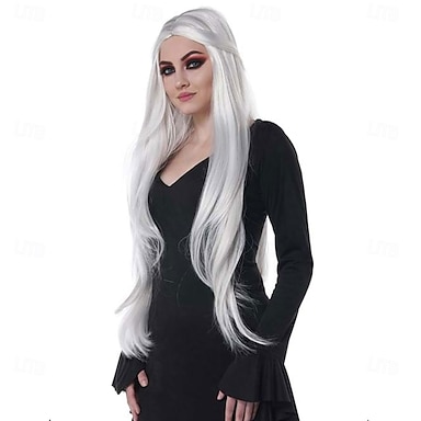 Perruque blanche longue pour femme, 28 pouces – idéale pour Halloween, le cosplay, les soirées costumées et les looks fantastiques