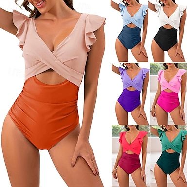 Femmes Normal Maillots de Bain Une Pièce Monokini Envelopper Maillot de bain découpe sexy Découpé Tenues de plage Été Uni Sans manches Maillots de bain