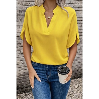 Chemisier Hauts habillés Femme Noir Blanche Jaune Couleur unie / unie Sexy du quotidien Elégant Col V Standard S