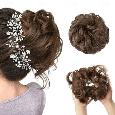 Chignon décoiffé, postiche à pince, cheveux bouclés et ondulés, faux cheveux, chignon ébouriffé, extensions de cheveux, chouchou, longue barbe, chignon, postiches pour femmes
