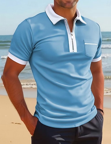 Homme Polo zippé POLO Casual du quotidien Col rabattu Quarter Zip Manche Courte Sportif Mode Bloc de couleur Zippé Quarter Zip Printemps été Standard Rose Claire Gris Claire Bleu clair Polo zippé