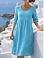 Robe maxi en coton et lin pour femmes Robe décalée Décontractée Quotidienne Ajustement régulier Unie Manches 3/4 Col rond Bleue Blanche Rouge Vert foncé Été Printemps Automne