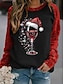 Noël Femmes T-shirt Graphique Noël Verre de vin Élégant ancien Mode manche longue Col en V Hauts Réguliers Quotidien Week-end Imprimé Noir Rose Claire Rouge Printemps Automne Hiver